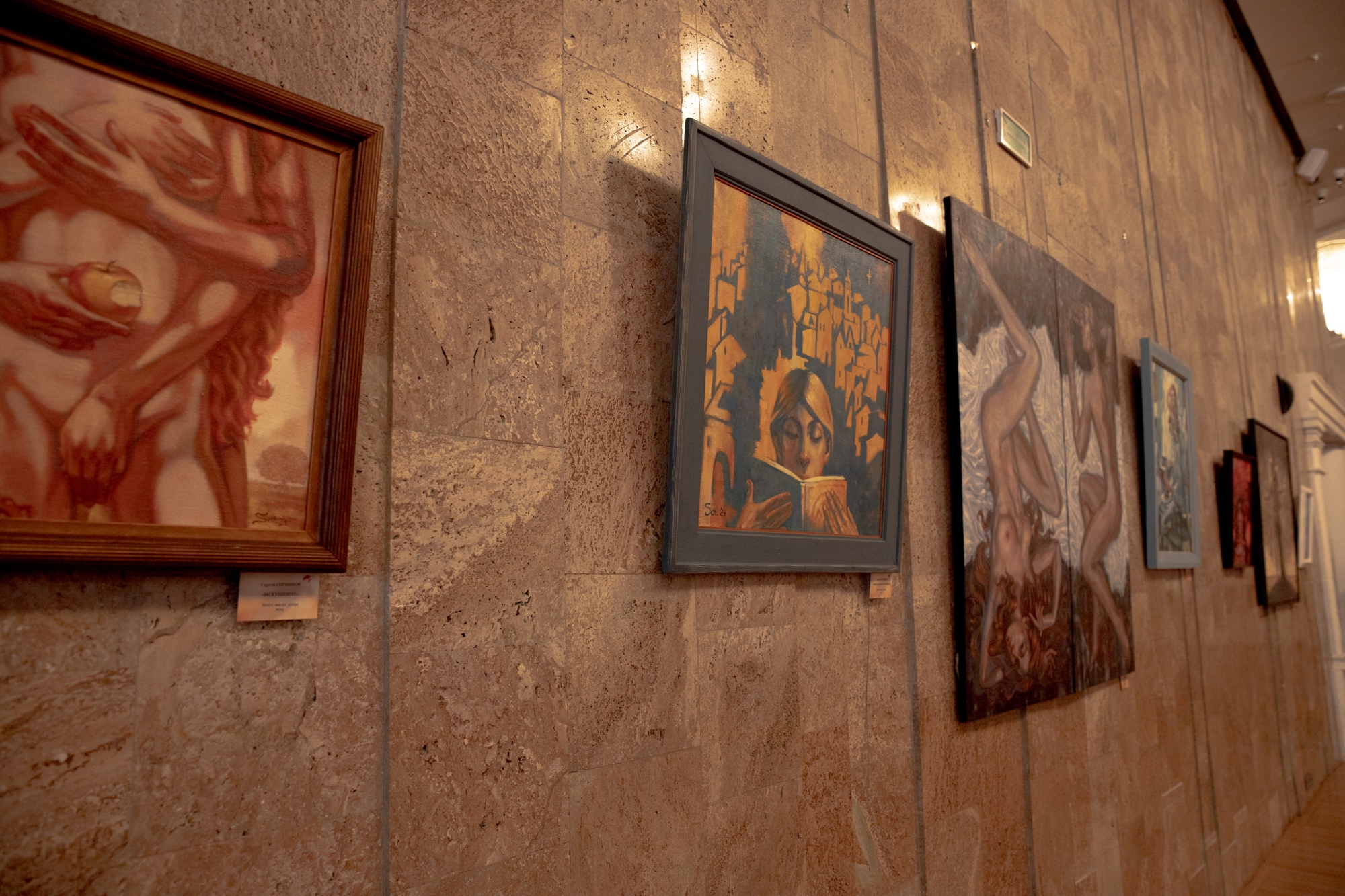 Здесь, в полумраке, работы художников предстают совершенно в ином свете и цвете. Особенно то, что к каждой выставленной картине можно возвращаться на волне своих чувств, чтобы находить там новые ощущения.